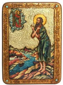Дата празднования: 30 марта Икона написана на натуральной деревянной доске, изготовленной из массива мореного дуба. Для оформления образа использованы специальные фронтажные грунты и выравнивающие лаки. Венец и поля иконы украшены вручную в стилистике русского орнамента.