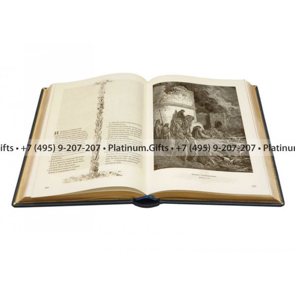 Описание: Стильно оформленное подарочное издание в кожаном переплете с трехсторонним золотым обрезом. Разными путями Бог открывает нам Свою любовь и истину – как через вечное живое Слово Свое, так и через непосредственное, личное общение с Ним в молитве прославления, благодарения и прощения. Блаженны слушающие и читающие Слово Божие. Оно вдохновило многих художников иллюстрировать Библию, передать читателям свое восприятие Божественного откровения. Перед нами книга Священного Писания с 230 иллюстрациями французского художника Гюстава Доре, выполненными в 1864 – 1866 годах. Изящно исполненные гравюры живыми картинами раскрывают перед нашим взором многовековую библейскую историю Ветхого и Нового Заветов: от сотворения мира до Откровения Иоанна. Мы видим образы великих мужей веры, пророков и апостолов, наглядно отображенную историю Израиля и прослеживаем Божий план спасения человечества через Сына Божьего, Иисуса Христа. С благодарностью Господу за возможность нового издания этой книги мы вручаем ее ищущим Бога и твердо верим, что она еще многим из них укажет путь истины и света. Кожаный тисненый переплет ручной работы с художественными вставками, металлические уголки. Исполнение в кожаном подарочном футляре с художественными накладками. Сертификат.